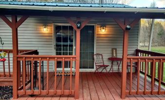 With 2 large bedrooms (1 on main level and 1 upstairs), this cottage can comfortably accommodate up to 4 adults and 2 children. Spend afternoons lounging on the front porch, or fire up the grill on the back deck, just steps away from a tranquil stream. In the evenings, gather around the fire pit under a large rock for a night of roasting hot dogs and s'mores.