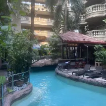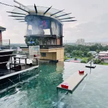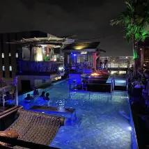 剛好是生日入住,櫃台小姐得知後為我準備了蛋糕和酒,還一起唱了生日歌,很貼心!房間很大,床也很大,非常好睡,有一個大浴缸可以泡澡,還有音響設備,非常享受。 頂樓有豪華酒吧,泳池有冷池和熱池,還有熱舞小姐 場地非常漂亮!有機會還會入住!