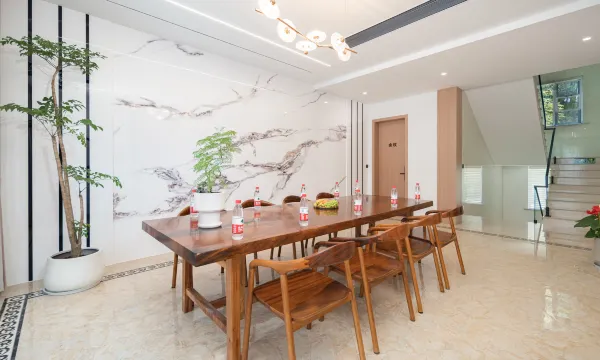 民宿位於安吉縣報福鎮湖村百丈塢,自然村之上的設計師民宿。坐擁上千600平米的佔地面積,集中了度假休閒、文體活動、娛樂觀景於一體,綜合性強,常有遊客慕名前來。推門而入。遊走在院內,處處是美景,簡潔明瞭,不絢麗張揚卻有著獨特的個性。整個民宿被山川環繞,像在與自然對話;陽光灑下,折射出斜風細影,美好而平靜。民宿共有三層,有大床房、雙床房,不同房型滿足不同出行需求,高檔標準的客房備品&布草。民宿有庭院泳池、孩童滑梯、棋牌室、會議室、餐廳、KTV、休閒吧,超級豐富的公區配套設施,可燒烤可團建;民宿門前視野廣闊,時光在這裡慢慢流淌,一草一木皆有靈,與萬物同呼吸,滿滿的度假感~