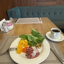 The location is ok since you can walk anywhere you need or get there by a car. The spa is a great option to relax. Breakfast is pretty good, diverse and some options change every day. Sorry to say, but coffee was 2/5.