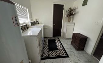 廚房設施齊全,配備全尺寸冰箱、爐灶、微波爐、咖啡壺、餐具、鍋碗瓢盆、廚具等等,讓您輕鬆烹飪美食。此外,屋內還配備了洗衣機、烘乾機以及備有清潔用品的儲物櫃,進一步提升了您的生活便利。第一間臥室配備一張雙人床、梳妝檯和充足的儲物空間,第二間臥室則提供一張雙人床和一張單人床,以及額外的儲物空間。