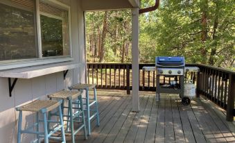 Freshly updated and comfortably appointed, our cabin provides the necessities for a couple nights, or a couple weeks. We especially love how the big sunlit windows in the living room overlook the forest. Step out onto the expansive deck for morning coffee in the filtered sunlight or enjoy afternoon beverages on the shady deck while BBQing your favorite meals. Explore the half acre forest of oaks and pines, keeping an eye out for the herd of 8 bucks or even the three bears we spotted when we first moved in.