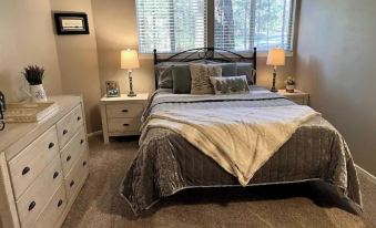 A wide path leads down through the half acre forested property toward the golf course and picturesque walks around both lakes. Enjoy drinks at Sequoia Woods or meals at Snowflake Lodge, both in easy walking distance, or stay home and create your own beautiful meals with our well- appointed kitchen.