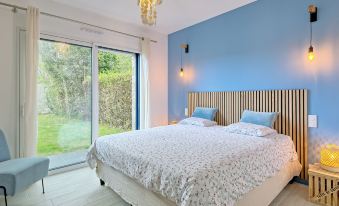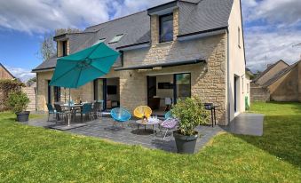 Single-family house "Villa Ker Anna", built in 2020. 1.9 km from the centre of Arzon, 11 km from the centre of Sarzeau, 34 km from the centre of Vannes, in the residential district, excellent location: right in the centre but still quiet, 350 m from the sea, 350 m from the beach, in a cul-de-sac. Private: property 560 m2 (fenced) with lawn, parking (for 2 cars) on the premises, single garage. Supermarket 600 m, restaurant 1.2 km, bar 1.2 km, bus stop 1.9 km, sandy beach "Plage du Fogeo-Kerjouanno" 350 m. Sports harbour 1.2 km, sailing school 1.5 km, tennis 1.2 km. Nearby attractions: Port du Crouesty 1.2 km, Thalassotherapie 1.2 km, Golfe du Morbihan-Départ Ile aux Moines 2 km, Golf Blue Green Rhuys (Kerver) 2.9 km, Port Navalo:Départs vers Belle Ile/Houat 3.6 km. Hiking paths: GR34 500 m. The owner does not accept any youth groups. 5-room villa 158 m2 on 2 levels. Fully renovated, very beautiful and modern furnishings: living/dining room with TV (flat screen). Exit to the terrace. 1 room with 1 french bed (180 cm, length 200 cm), shower/WC, double hand-basin and TV (flat screen). Exit to the terrace. Large, open kitchen (oven, dishwasher, 4 induction hot plates, toaster, kettle, microwave, freezer, electric coffee machine, Capsules for coffee machine (NESPRESSO) extra) with bar, dining table. Sep. WC. Upper floor: 1 room with sloping ceilings with 1 french bed (160 cm, length 200 cm). 2 rooms with sloping ceilings, each room with 2 beds (80 cm, length 200 cm). 2 showers, sep. WC. Heating. Terrace, south-west facing position. Terrace furniture, barbecue, deck chairs (4). Facilities: washing machine, dryer, iron, children's high chair, baby cot. Internet (WiFi, free). Please note: non-smoking house. Maximum 1 pet/ dog allowed. Smoke alarm. Offer by a private individual according to Art. 155, IV of CGI.