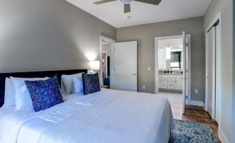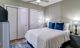 Stunning condo in downtown Asheville. Enjoy two master bedrooms and a private balcony with downtown and mountain views. Located on Biltmore Ave. in downtown, you are central to all that Asheville has to offer: shopping, restaurants, breweries, and galleries. Also, just a short drive from the Biltmore Estate or the Blue Ridge Parkway, the location is one that is hard to beat. One parking space is available, but the car can be no larger than a Tahoe-type vehicle. For guests with a pet, the fee is $75 (plus tax) and must be paid before arrival.