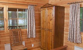 Log cabin 1981, renovated 2001, lounge with fireplace, kitchen, bedroom with bunk bed for children, bedroom with 2 beds, sauna, dressing room, washroom, vestibule, 2 x open veranda. Portable charcoal BBQ grill. Coal must be brought. For families only.