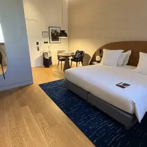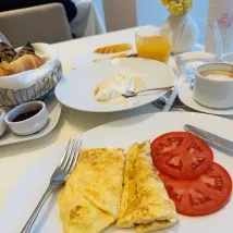 Excellent location, right in the heart of Athens. The room was exactly as shown in the photos (family room), spacious and fully equipped. Amenities in the room were of high quality (loved the scent of the toiletries!). Extra comfy bed, duvet and pillows. Highly recommended for stay! The only thing that could be improved is the breakfast. From a famous restaurant like Milos, I expected something better in quality and taste. The quantities were ok, but lacking in quality. The bread was not warm, the fruit plate poor (tangerine, pear and kiwi) and the omelet indifferent, no taste at all. We didn't dine at the restaurant, so not sure whether it had to do with breakfast or with the meals in general. Very helpful staff, though.