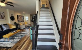 The staircase to the second floor leads to 3 bedrooms and 1 full bathroom. Please be sure the sleeping arrangements meet your needs.
