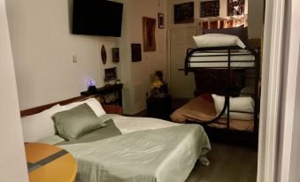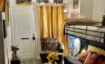 Experience city living in this historic, ground floor row house apartment. This roomy unit has soaring ceilings and sleeps 7. It is decorated with unique furnishings and features art from local artists. After a busy day, how nice would it be to melt into the world’s most comfortable mattress? This PranaSleep mattress is dreamy and like sleeping on a cloud. There is a darling back yard for use, please note, it is a work in progress. A short walk to the famous boardwalk, beach, shops & resorts.About pets:No pets allowed.About checkOut:Check out before 11:00 AM.About children:Children allowed: ages 0-17.About checkIn:Check in after 4:00 PM.About smoking:Smoking is not permitted.About minBookingAge:Minimum age to rent: 18.About events:Events allowed: family gatherings, birthday parties, weddings.Maximum event attendees: 12.