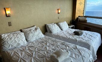 You have an ocean front view a few minutes walk from major casinos.! Wake up in your big comfy bed to stare out over the sparkling ocean. Have a nightcap with your special someone in the full length window seat watching the lights come on over the boardwalk at night and the Ferris wheel and casino lights shine. All this from your private condo! Be prepared to fall in love with it.