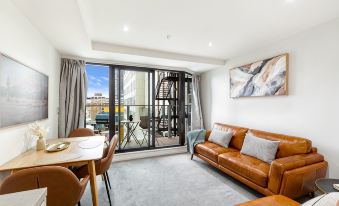 Stylish Modern Unit w Balcony and Pool Zodiak Stays地理位置超棒,位於奧克蘭中心,擁有健身中心。這家公寓配備帶庭院和免費WiFi的客房。