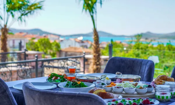 環境與位置: 酒店位於Cunda市中心或附近,步行即可抵達市場、海灘、餐廳與酒吧,交通便利;周圍有花園、泳池與海景,部分房型附帶私人小花園,環境安靜且自然景觀優美。