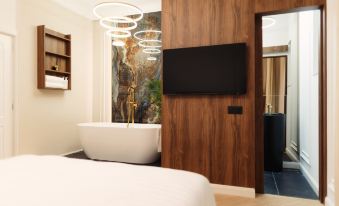 Modern¢ral apartment with a gorgeous bathtub inside one of the two bedrooms.