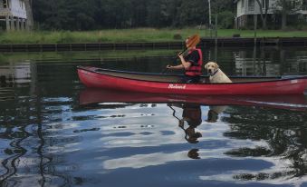 On 34 acres, This was once part of the Grand Hotel and is known as Grand Hotel Fish Camp, and can be found online at GrandHotelFishCamp.com The historic cottage is a one bedroom 1 bath and approx 1400 sq ft with a deck and patio for entertaining. Luxurious King size bed the cottage is perfect for a couple or single occupancy. Sheets are 1000 thread count. Comforter is lightweight. The cottage can accommodate an additional 2 people on a deluxe sofa bed and an additional one person on a twin bed. The cottage has one bathroom with tub and shower completely furnished with amenities including luxury towels. The home is situated up a hill away from the flood zone and The furnished boathouse is just down the hill with with outdoor furniture, city water, hot water heater, refrigerator, grills and microwave. kayaks, paddleboard, and canoes available. The surrounding property is wooded with fields. There is a porch and patio with hot tub for outdoor entertainment and a grill. Guest privileges at the Grand Hotel are available at extra cost subject to availability. Excursions aboard our Hatteras 37 are available also, subject to availability and extra cost.About pets:Pets allowed: dogs less than 50 lbs per pet (limit one pet total).Additional accommodations onsite @BelleShain.com.About checkOut:Check out before 12:00 PM.About children:Children allowed: ages 0-17.About customRules:Owners operate as an event venue. All events MUST be permitted with a contract. No reasonable requests denied. Property is a non smoking property..Just because we host or allow events does not mean this is a party house. Owners live on far side of the 34 acres. There is a common driveway..About checkIn:Check in after 3:00 PM.About smoking:Smoking is not permitted.About minBookingAge:Minimum age to rent: 21.About events:Events allowed: family gatherings, birthday parties, weddings.Maximum event attendees: 50,Approval granted with permission.