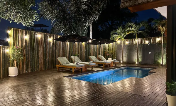 這個別墅位於倉古派芮芮南,距離塔納洛特寺和飲食街不到 15 分鐘車程。 此別墅距離水明漾海灘 4.3 英里(7 公里),距離勒吉安海灘 7.5 英里(12 公里)。