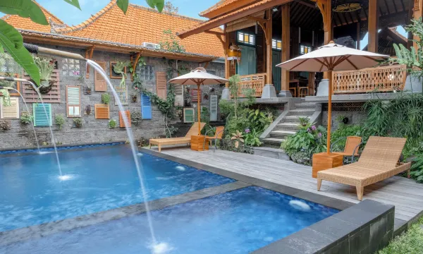 環境位置: 酒店位於文化中心或住宅區,周邊有稻田、傳統市場及藝術景點,步行可達咖啡廳與餐廳,交通便利且環境安靜。多數評價強調其隱蔽性與自然景觀,如稻田、傳統巴厘島建築與泳池設計,適合放鬆與文化探索。(根據 1 則評論)