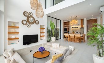 這家別墅享有池景,為顧客提供陽台、休息區、平板電視、帶冰箱和烤箱的設施齊全的廚房以及帶坐浴盆和吹風機的私人浴室。如未自帶,顧客可使用額外收費的毛巾和床上用品。