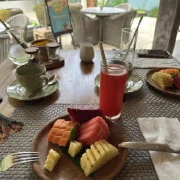 這家酒店太棒了!工作人員非常友好,早餐令人讚嘆不已,如果您提前報名,早上您可以去做瑜伽(需要付費)。別墅設計時尚現代,帶有峇裡島風格。 當我們到達時,他們為我們泡了蜂蜜茶——這給我們留下了他們在等我們的愉快印象) 飯店別墅很少,人也很少,感覺比較私密。 泳池很好。 我建議選擇二樓的別墅——對我們來說,一樓有點暗。我們入住的時間很晚,所以一開始我們不太理解,但是早上我們聯繫前台後,他們給了我們換到二樓別墅的機會。 唯一可以改進的是日光躺椅(別墅內和泳池邊的),它們已經很舊了 🙂 否則,我們 100% 推薦這家酒店 - 住在那裡你會感受到烏布)
