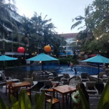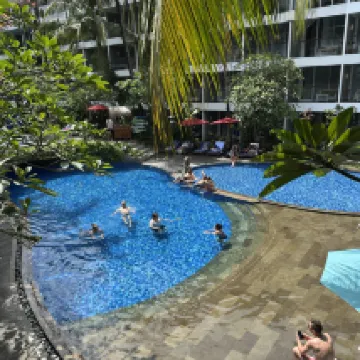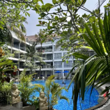 價格實惠,設施一流,性價比很高。高級客房略小,但足夠情侶入住。如果我再去峇裡島,一定會再預訂。此外,飯店提供前往水明漾海灘的免費接駁車。計程車會到大廳接您,方便快速。食物也不錯,但素食選擇有限。泳池乾淨整潔,是這家飯店的一大亮點。