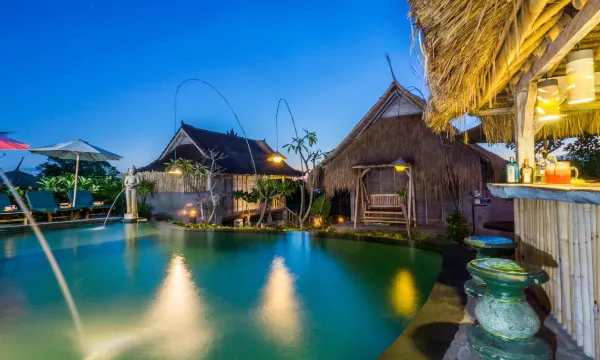 Bel emplacement pour cet hôtel charmant avec piscine très propre à l'eau de mer avec transats et parasols .nous avons été accueilli avec un jus d'orange frais ce qui est des plus important lorsque l'on vient d'arriver avec le bateau. Ensuite notre bungalow était parfait avec étagères pour ranger nos vêtements ainsi qu'une penderie pour pendre les robes. Coffre fort à disposition. Petit déjeuner avec pancakes délicieux. Le restaurant sert des plats super bon,la location de scooter livré sur place est aussi intéressante pour 1 journée complète et pas cher .le plus de cet établissement c'est les deux responsables toujours prêts à vous rendre service leur prénoms Madé et Ryan's sont d'excellents intermédiaires. Vraiment je conseille cet hôtel.