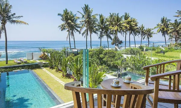 We stayed in the large 5-bed villa #3 and was 7 of us, 2 coupes and 3 teenage boys. We had heaps of space and the property was total luxury with 5 beds with ensuite and massage room. The pool and surround gardens were massive with rear gate opening onto the beach. The service was excellent with grounds staff and housekeeping constantly maintaining everything. Breakfast was good but menu was small and staff werent able to slightly vary. Not their fault, I suspect thats what they were instructed. For variety we ate at nearby warung on beach. Hotel Komune is nearby but food is ordinary. For dinner we ate at Warong Legong which was fantastic and also its neighbour Warung Karung which offered great food at ridiculously cheap prices. We went to Keramas for surfing but if you didnt surf its hard to see why you would stay here as the beach is black sand and often rubbish on the shoreline. You wouldnt swim in the oecan here at all. An amazing property for visiting surfers or surfing families.