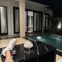 Service was great - every night when we returned we found on the table some little cakes for us from the in house bakery. Service staff were friendly. The front desk even found us a good massage place in Kuta at our request, far away from villa. There is a shuttle bus that you can pre book to go within 5km radius of villa. The location was far from main road and we will not walk given the gravel path and some parts of the road was steep, not to mention of course there was no lighting.