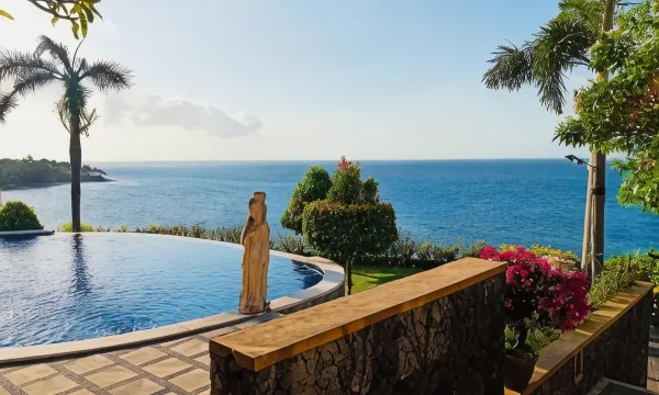 Останавливались на 3 ночи. В целом отель произвёл отличное впечатление. Он расположен напротив участка пляжа с хорошим снорклингом, утром видели огромную черепаху. Завтраки по меню сытные, из виллы вид открывался прямо на море, также имеется бассейн с потрясающим видом.