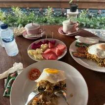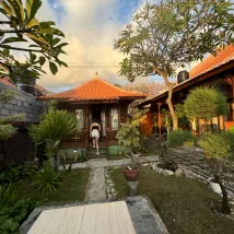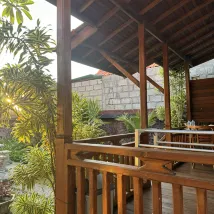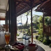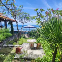 Отель расположен прямо на берегу моря, но пляжный отдых тут невозможен - берег грязный, много лодок и мелко. Но зато красивые рассветы и вид на Агунг обеспечены! А самое главное здесь - это радушные хозяева! Семья потрясающая, мы во всем чувствовали их заботу и помощь по всем вопросам (организовали нам трансфер от порта, авто с водителем для осмотра острова, билеты на лодки и многое другое). Благодаря их помощи, программа по осмотру Нуса Пенида была выполнена на 120%, ещё раз спасибо огромное хозяевам! Вкусные завтраки приносили прямо на террасу. Есть горячая вода и фен. Из минусов - в номере нет холодильника и нет чайника, приходилось каждый день беспокоить хозяев с просьбами о чае/кофе. Ну и бассейн бы очень не помешал после экскурсий. Но это придирки уже. В общем, по соотношению цена-качество это лучший вариант!