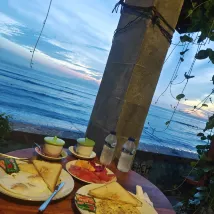 Очень милые хозяева, отель семейный, расположен на берегу океана, восход изумительный, но пляж не для купания, мелко и волны. Уютно, дворик ухоженный, соотношение цена-качество соответствует. К проживанию рекомендую.