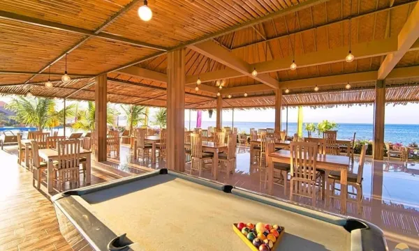 房間與設施: 房間寬敞、現代化,配備冰箱、保險箱、獨立浴缸與淋浴間,部分房型設有露台與工作區;泳池近海且乾淨,設有遮陽傘與太陽椅。(根據 9 則評論)