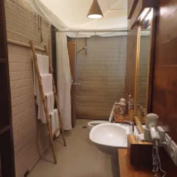 豪華露營,服務同樣豪華🤍 留在這裡慶祝我的26歲生日! 所有工作人員都很友好且樂於助人,食物也出奇的美味,設施也不錯,唯一的缺點是我住在雨季,所以景色不太美麗,總體來說 10/10 🤍