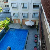 The pool was a bit dirty and the room needed a bit of repainting. They forgot to refill the body soap, but overall the breakfast made up for it — really tasty