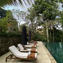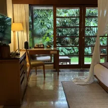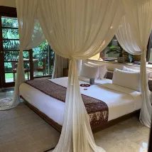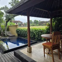 必須打全5星的一家酒店 環境:真正做到了鬧中取靜,出酒店就是烏布最繁華的一條街,連接大皇宮和聖猴山。進了酒店就是一個度假村,每間房都有獨立的小庭院。綠化做的很好,整個度假村鬱鬱葱葱,綠植環繞。 服務:超級棒,入住的時候管家會帶着介紹一圈;離店後逛了一天出汗太多晚上趕飛機,也讓我們使用了spa間的淋浴房。 設施:房間很大,尤其是浴室區域,有浴缸有淋浴;每天早上9點有免費的瑜伽課;有泳池;有spa