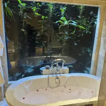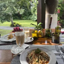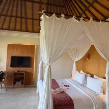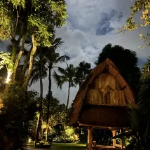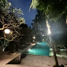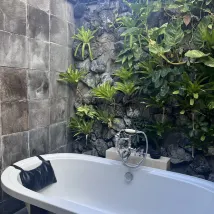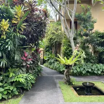 環境滿分,雖然在烏布中心,但走進酒店之後整個世界都靜了,一下子從嘈雜到安靜,竟然還能聽到蛙鳴,晚上亭子裏還有小小的音樂儀式 酒店不算大(一共衹有二十幾間房),但彷彿走進了一個熱植天堂,好多小眾植物都不認識,早餐是在一個半户外的涼亭裏,品類不多但也能吃飽 相比室外花園的設計感,房間設計稍微弱了點,房間很大,但蜜月套房風兩個女生住似乎有些不妥,另外就是入住的第一晚洗澡時候浴室堵住了…設施估計太老了需要好好升級一下