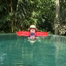 酒店的地理位置爆贊 出門右邊走不到十分鐘就是烏布皇宮左手邊一直走是猴子公園方向 周邊全部是各種沿街小店超級好買 酒店內部別有洞天 很大很森林 泳池很仙 就是沒打掃的時候有很多樹葉。酒店很原生態 你會看到很多壁虎和小青蛙 房間關好門就沒問題 房間佈置的很美 所有水果和零食都免費 還提供免費下午茶 早餐簡單點餐式但風景不錯。晚餐餐廳內還有歌手駐唱。另外SPA館二樓每天有免費瑜伽課 環境超讚看着一片稻田做瑜伽 另外酒店門口有個酒店自己的畫廊和商店。媽媽説酒店味道好聞 商店有賣空氣噴霧 噴在室內的 很多味道很好聞 推薦 外面買不到。有個小問題就是酒店隔音欠佳。總之下次來烏布還會選擇的酒店