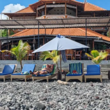 Сначало нас заселили в номер на горе. Я была в, ужасе. А когда ночью начали орать лягушки, и под утро петухи, то хотела отменить бронь. Сам номер неплох, но звукоизоляции никакой. Как будто в курятнике спишь. Рядом частный сектор. Но отель предоставил нам другой номер, на берегу океана. И уже дальше отдых стал отдыхом, а не мучением. Полотенца белоснежные, постель не очень. Номер вполне просторный, есть замыкающаяся на ключ веранда, с кроватью и диванчиком. В этом номере реально было тихо. В океане как раз напротив отеля самый снорклинг. Много рыбок. Маску можно взять в отеле. Далеко до центра и кафешек. Рядом негде поесть, только если в отеле. Завтраки были отличные, прямо на берегу, с видом на океан. Пляж, просто огромные булыжники, лучше иметь с собой коралки. Океан очень тёплый.