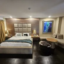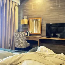 Отель был когда то хороший. Интерьер и пространство продумано, но все очень износилось , сантехника, плинтуса . Окна выходили на сторону дороги , а там дорога в гору и байки слышно было , будто они у нас в номере. В эту ночь была сильная гроза, примерно в 2 часа ночи выключили электричество и возобновили , только в 8 утра , кондиционер не работал , было жарко в номере . Лифт тоже не работал .