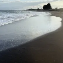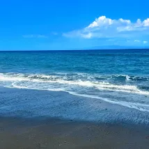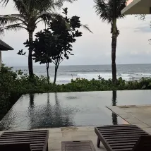 Красивое тихое место. Вилла с шикарным видом на Океан. Пляж интересный, чёрный песок. Но волны сильные, так и не искупались. Спасает прекрасный бассейн.