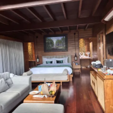 Stay was awesome, great hospitality. Epic view, even though we arrived on rainy day but we were still lucky enough to get to see the starry night from our villa.