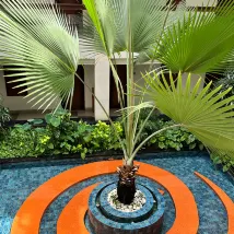 There is a lovely curved infinity pool upstairs giving you a sheltered look over Legian Road, and from the top level you have a great view of the Sunset and 2 Volcanos in the distance.