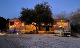 The Cowboy Cabin is located on 5 quiet acres just minutes from Downtown Bandera, TX. This Western themed cabin sleeps 4 guests with a queen bed in the bedroom area and a full sleeper sofa in the living area. The front porch offers a view with wildlife. The living area holds a dining table, kitchenette with sink, mini fridge, microwave, Keurig and single cooktop. A Smart TV is in the living area and antenna TV in bedroom. Full bath with tub/shower combo.About pets:No pets allowed.About checkOut:Check out before 11:00 AM.About children:Children allowed: ages 0-17.About checkIn:Check in after 3:00 PM.About smoking:Smoking allowed: in designated areas.About minBookingAge:Minimum age to rent: 25.About events:No events allowed.