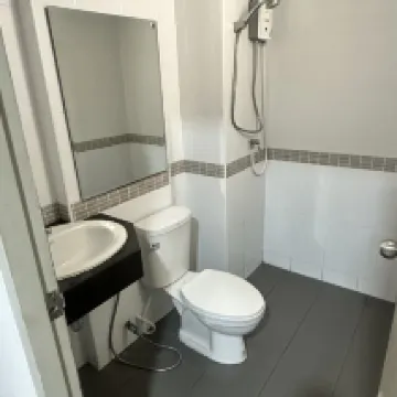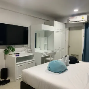 房間乾淨,景色不錯,但要鑽進一條很深的巷子裡。適合有私家車的人。房間寬敞,大床可以舒適地睡兩個人。房間裡有電視,可以看Netflix,在YouTube上聽音樂,冷氣涼爽舒適,但浴室有點吵,打開水龍頭,就會立刻發出很大的噪音。樓下有地方24小時出售小吃、水和一般物品,還有一家餐廳可以點餐。或者你可以打電話訂餐,有送餐服務到房間前面。你可以步行500公尺到7-Eleven,或是步行12-13分鐘到粉紅線BTS站❤️❤️