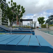 泳池算乾淨喔、有個桑拿房。剛好只能坐2個人。其實算是桑拿箱。房間有廚房還可以。床舒服乾淨。只是旁邊都是別人家的冷氣跟對戶只有幾公分距離。不能開窗。但整體來說是可以的。