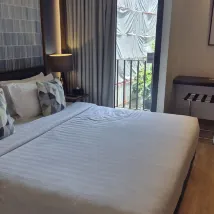 服務冷漠。不和顧客說話,只是低頭。我離開時,沒有人說謝謝或再見。感覺很冷淡。 我用Trip上的篩選條件預訂了有陽台的飯店。 他們有陽台,但鎖著。基本上就是一扇打不開的窗戶。 他們要你簽署一份表格,確認這是一家無菸飯店。但他們仍然鎖著陽台,因為他們把你當小孩一樣對待。他們這麼說是為了讓客人不吸煙… 限制包含在房費中的空間和房間大小的管理決策很糟糕。他們拒絕退款,但Trip給了我一些旅行幣。 我用陽台掛衣服,呼吸新鮮空氣,還能提高房間溫度。 。 飯店位置離主街很遠,但你只能搭乘他們時刻表上的接駁車。或搭計程車,20泰銖。 711很近。日式Nuru按摩就在街對面。 對於UHG旗下的飯店來說,這表現不太好。