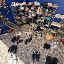 你不想冒犯也冒犯了,本來年底客人就很多,來遊玩的住客當然要把行李放在店裡或者房間裏,不然你要讓客人把東西扔在外面嗎?圖片裏行李擺放整齊,有什麼問題嗎?這裡是酒店,不是你家,難道除了你,其他客人不能放東西嗎?客人脱鞋進去是他們的自由,我們把鞋子整理好的時候怎麼不見你拍照?也難為你一直等到鞋子亂的時候才拍照