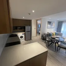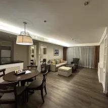 地理位置優越,房間非常棒,我們定的兩間房的,有兩套洗手間,一個大浴缸,私密性也非常強。房間裏廚房用品應有盡有,長住或短住都非常適合。