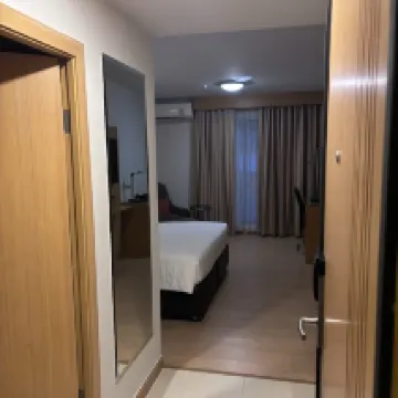 Room have enough space and amenities. Staff are kind and able to communicate in both English and Chinese. Price are acceptable. Location are so so not far from airport to go others place you have to go by taxi.