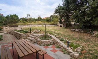 The modernly furnished, detached house in a residential area in the Barbat district 4.5 km from the center of the old town of Rab. Seen from the property on the sea, it is located just 250 meters from the sea. Access is from the main road.