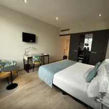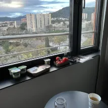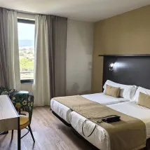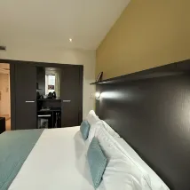 The hotel located in a residential area abit far away from the tourist spots. There is a metro station about 5 min walk from the hotel. We mainly bolt cost about 10-20 euro to central, train is also quite convenient when there is congestion. Room is good size. Gym is very small. In winter there is only heating in the room, even advertised with air conditioning. We have to open window if room got too hot but we are reluctant to do so due to safety reason of our 4 yr old. I discussed with the receptionist, they changed our room to a lower level and provide us a fan.