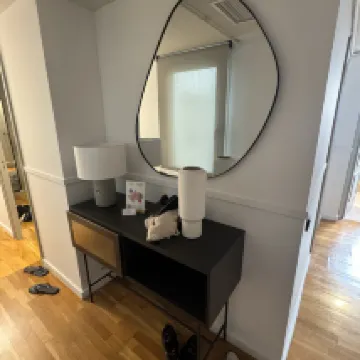 我住的房子有兩間臥室和一間客廳。房間是分開的,而且分割得很整齊,這點很棒。洗衣機和烘乾機也很好用。唯一遺憾的是,在我入住的四天裡,電梯壞了,而且沒有採取任何措施。我收到了一封道歉郵件,但是……實際上只有三層樓,所以帶著行李箱爬上五層樓真的很難。